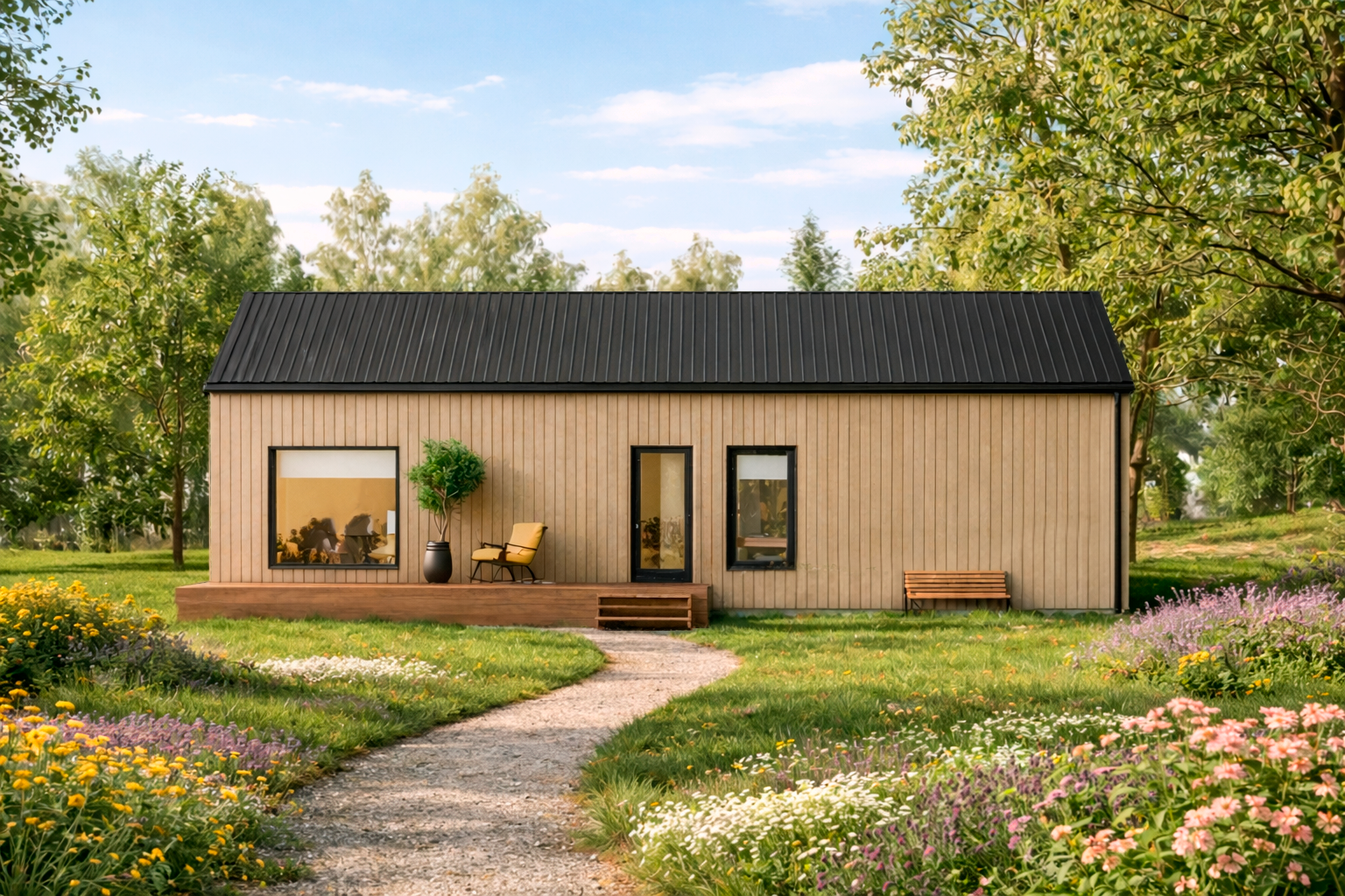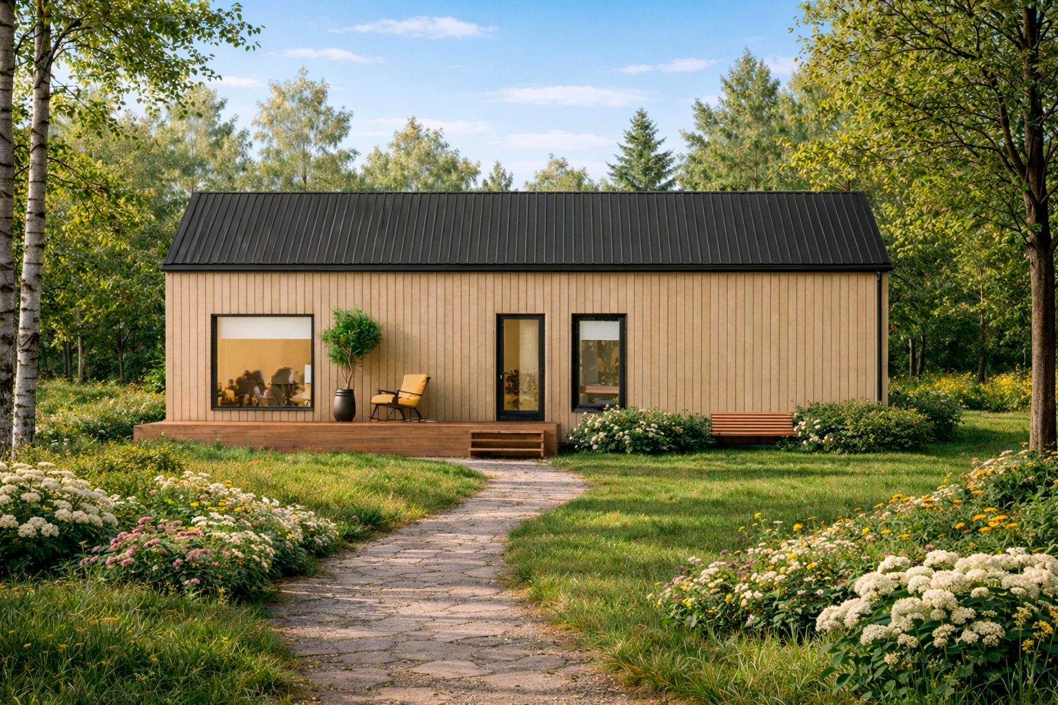 Доставка осуществляется стандартным грузовым транспортом: размеры элементов оптимизированы под еврофуры, открытые платформы и железнодорожные перевозки. Благодаря этому домокомплект можно без проблем доставить даже в локации с ограниченной транспортной доступностью.