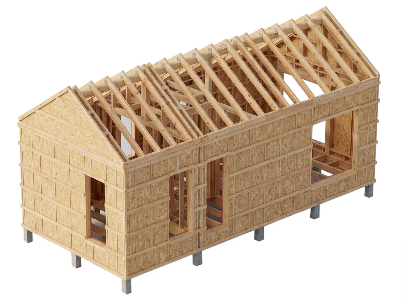 Сборка на участке происходит быстро и точно — все элементы уже подготовлены и идеально стыкуются между собой. Отсутствие необходимости «доработки на месте» позволяет минимизировать влияние человеческого фактора и значительно ускоряет процесс строительства. Конструкция получается стабильной, с минимальной усадкой и высокой точностью геометрии.